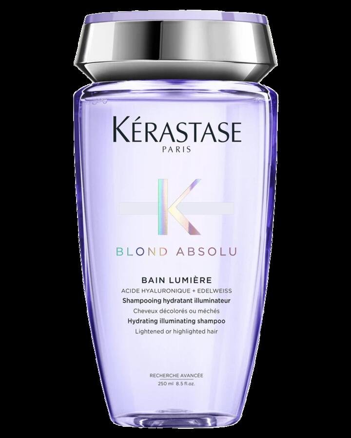 Illuminate and hydrate your blonde hair with the Kérastase Blond Absolu Bain Lumière, a nourishing shampoo for all types of lightened, highlighted, or grey hair. This lightweight yet deeply moisturising formula is designed to gently cleanse the hair, removing impurities, pollution, and dulling agents, while providing intense, long-lasting hydration. Powered by a potent combination of Hyaluronic Acid and Edelweiss Flower, it works to heal the hair fibre from within, leaving it soft, smooth, and incredibly luminous with a healthy, natural shine.