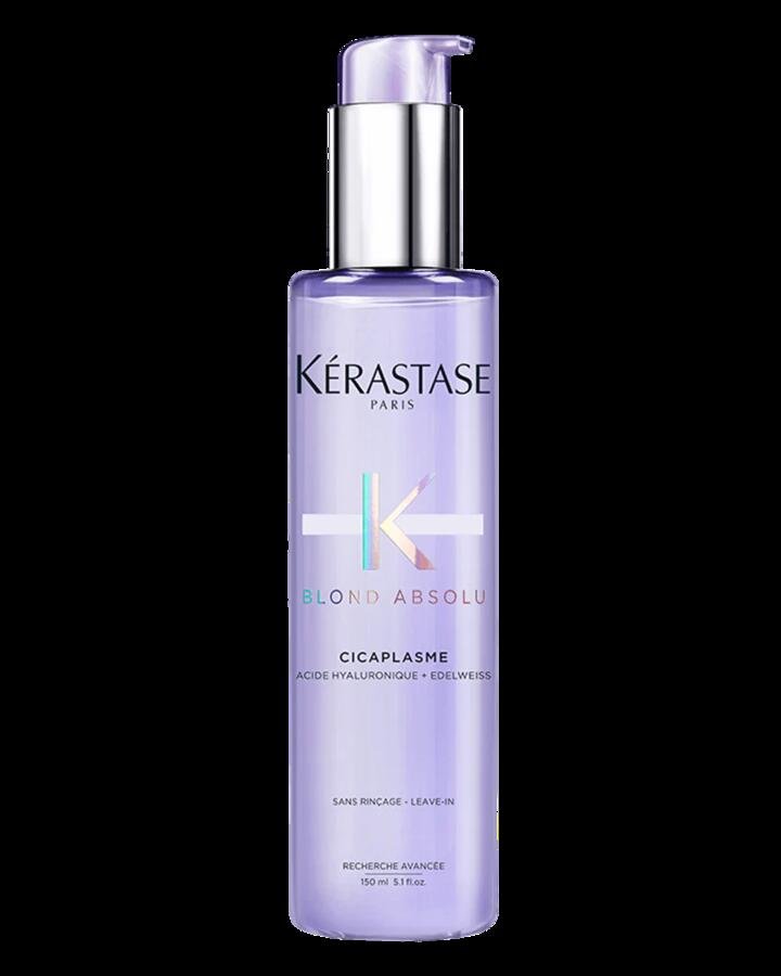 This is an essential multi-benefit leave-in serum for all types of blonde, lightened, or highlighted hair. The Kérastase Blond Absolu Cicaplasme is an opalescent, lavender-coloured leave-in cream designed to fortify sensitised hair, provide powerful heat protection, and seal the appearance of split ends. Powered by a potent combination of Hyaluronic Acid and Edelweiss Flower, it provides intense hydration and protects the hair fibre from daily aggressors. The result is hair that is beautifully smooth, soft, and luminous, with lasting frizz control and crucial protection against both heat and UV damage.