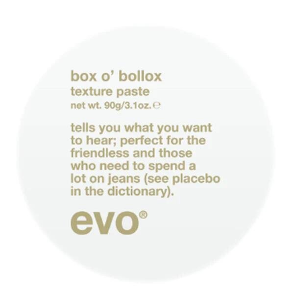 evo Box o’ Bollox is an extra-strong hold texture paste designed to deliver rugged definition, volume, and complete style control with a super-matte finish. Ideal for creating structured, textured looks that stay in place all day, this styling paste works best on dry or towel-dried hair. Its pliable formula allows for flexible styling without stiffness, making it perfect for short to medium hair lengths and all hair types.
