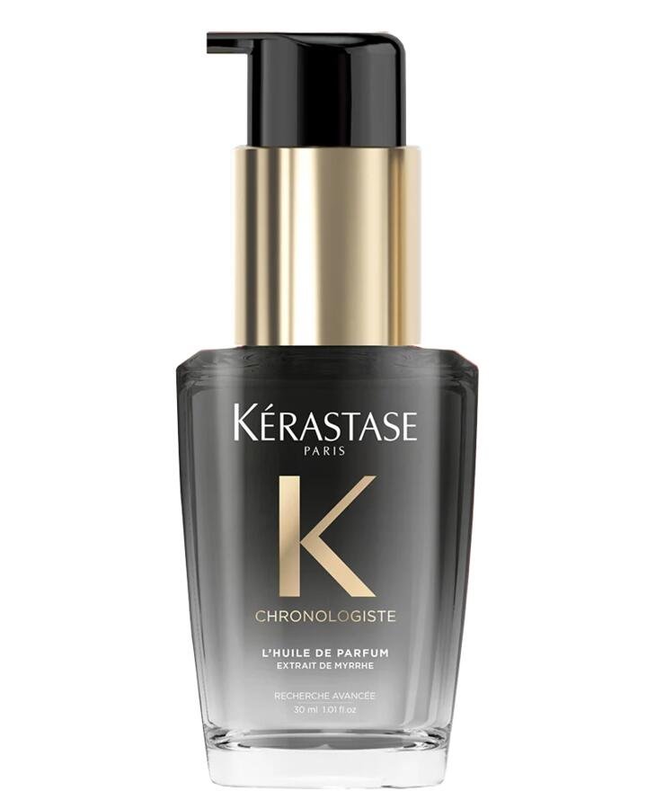 Experience the pinnacle of hair luxury with Kérastase Chronologiste Huile de Parfum, a beautiful fragrance oil for your hair, now in a convenient 30ml size. This multi-purpose finishing oil is the ultimate final touch for any hairstyle, designed to impart a sublime, long-lasting fragrance while delivering intense shine, nourishment, and frizz reduction. The signature Chronologiste scent, created by master perfumer Alberto Morillas, features notes of Tea Rose, Light Woods, and Musk, leaving your hair beautifully scented, incredibly soft, and brilliantly shiny.