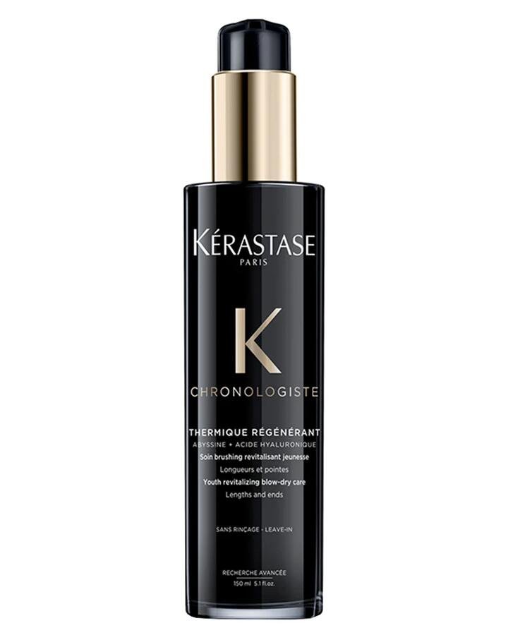Protect and perfect your hair with the Kérastase Chronologiste Thermique Régénérant, the essential final leave-in step in this youth-revitalising ritual. This luxurious blow-dry cream is designed to shield the hair from the damaging effects of heat while refining its texture and sealing the cuticle for a flawless finish. Powered by a potent combination of Hyaluronic Acid, Abyssine, and Vitamin E, it provides powerful protection, long-lasting frizz control, and essential hydration. Imbued with the signature Chronologiste fragrance, it leaves hair beautifully smooth, soft, and revitalised.