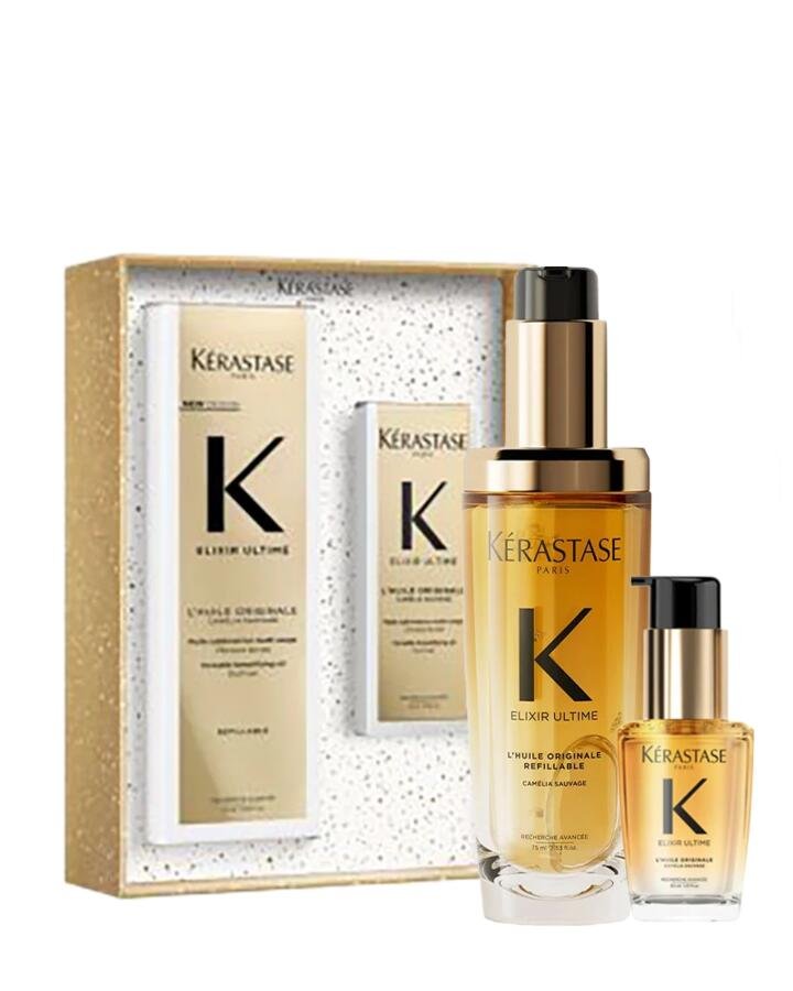 Exclusive to Stefan in Queensland, this limited-edition duo celebrates the iconic Kérastase Elixir Ultime L’Huile Originale. This legendary multi-purpose hair oil provides the ultimate in shine, nourishment, and frizz control for all hair types. The formula features a luxurious blend of precious oils, including Marula, Camellia, and Argan Oil, to smooth the hair fibre, protect against damage, and leave hair with an incredible, long-lasting radiance. This exclusive set includes a full-sized, beautifully designed 75ml refillable bottle and a convenient 30ml travel-sized oil, perfect for maintaining flawless hair both at home and on the go.