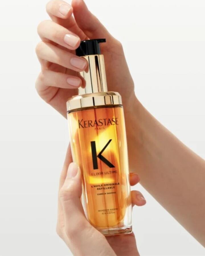 Experience the ultimate union of iconic luxury and sustainable design with the Kérastase Elixir Ultime Refillable Set. This beautiful collection includes the timeless, refillable glass bottle and the Elixir Ultime L’Huile Originale refill pouch. The iconic oil is a versatile, multi-purpose treatment enriched with a precious blend of Marula, Camellia, and Argan oils to deliver intense shine, long-lasting frizz control, and powerful heat protection. This eco-conscious system uses 64% less plastic, allowing you to indulge in your favourite hair oil while reducing your environmental impact.