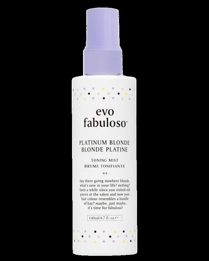 evo Fabuloso Platinum Blonde Toning Mist is a lightweight, leave-in spray designed to gently tone, treat, and detangle blonde, grey, or lightened hair. Infused with violet pigments, this mist refreshes colour, reduces brassiness, and adds shine while protecting hair from UV and heat damage. Ideal for daily use, it primes hair for styling and enhances manageability without weighing it down.