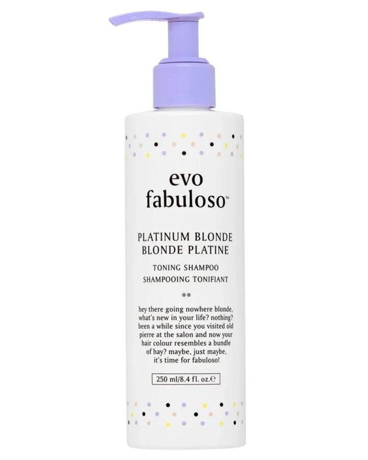 evo Fabuloso Platinum Blonde Toning Shampoo is a professional-strength purple shampoo designed to gently cleanse and tone lightened blonde or grey hair. It neutralises unwanted brassy and yellow tones while reviving dull colour and enhancing shine. This sulfate-free, vegan formula is enriched with nourishing ingredients to soften, strengthen, and improve manageability, leaving hair vibrant, cool-toned, and refreshed.