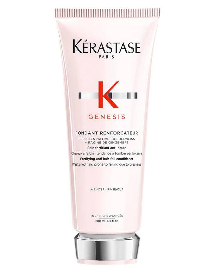 Strengthen your hair with every wash using the Kérastase Genesis Fondant Renforçateur. This lightweight yet powerful anti-hair-fall conditioner is designed for weakened hair that is prone to falling due to breakage. It provides instant reinforcement and lightweight nourishment, helping to restore the hair fibre and reduce the risk of future breakage. Powered by a potent combination of Ginger Root and Edelweiss Native Cells, it works to increase the hair’s resilience against daily stressors. The result is hair that is left feeling incredibly soft, smooth, hydrated, and easy to detangle, without being weighed down.