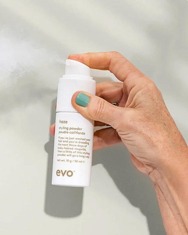 Evo Haze Styling Powder is a super-lightweight, volumizing powder that adds matte texture and flexible style support to all hair types—especially fine or limp hair. This versatile, vegan formula absorbs excess oil, boosts root lift, and enhances separation for a lived-in, tousled look. It features a refillable pump for easy, targeted application and is ideal for creating instant volume without residue or stiffness.
