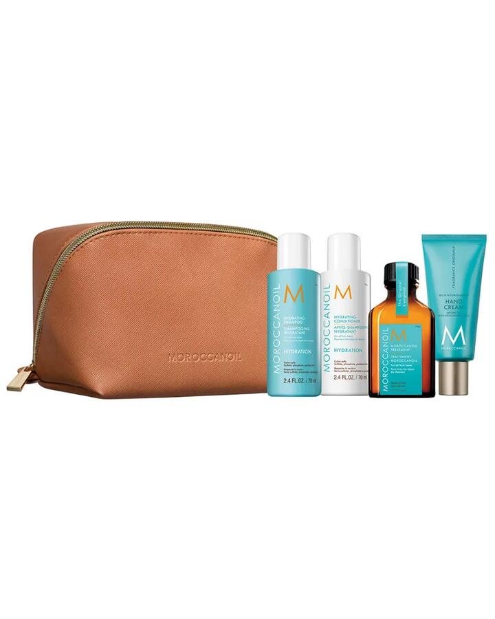 Discover the core essentials of Moroccanoil’s signature hydration with this limited-edition gift set, perfect for trial or travel. Housed in a stylish cosmetic bag, this collection features a complete routine to gently cleanse, condition, and style dry hair, plus a luxurious treat for your hands. The set includes the Hydrating Shampoo and Conditioner to restore optimal moisture balance, the iconic Moroccanoil Treatment Original for styling and finishing, and the richly moisturising Hand Cream in the signature Fragrance Originale scent. All products are infused with nourishing, antioxidant-rich argan oil for beautifully healthy hair and skin.