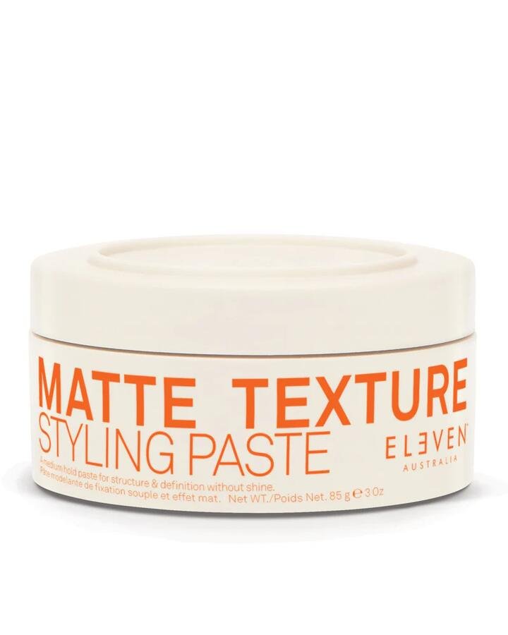 ELEVEN Australia Matte Texture Styling Paste is a versatile, medium hold styling product designed to create texture and movement with a natural matte finish. Ideal for short hair, this pliable paste allows for reworkable styles throughout the day without stiffness or residue. Enriched with Beeswax, Castor Seed Oil, Avocado Oil, Argan Oil, and Hydrolysed Soy Protein, it nourishes while providing flexible hold and frizz control. With a subtle vanilla fragrance, it’s perfect for achieving relaxed definition and touchable texture.