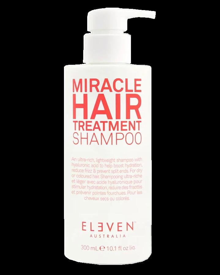 ELEVEN Australia Miracle Hair Treatment Shampoo is an ultra-rich, lightweight formula designed to hydrate, smooth, and strengthen dry or coloured hair. Infused with Hyaluronic Acid, Cucumber Extract, and Chamomile Flower Extract, it helps reduce frizz, prevent split ends, and restore softness and shine. This low-foaming, sulphate-free shampoo gently cleanses while repairing damage caused by heat styling, colouring, and environmental stressors. With a refreshing Coconut & Lime fragrance, it’s ideal for everyday use to maintain healthy, vibrant hair.