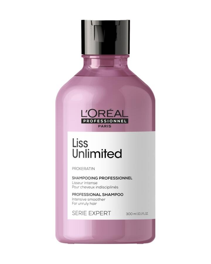 Tame unruly hair with L’Oreal Professionnel Serie Expert Liss Unlimited Shampoo. This versatile daily shampoo is crafted with potent ingredients to strengthen, protect, smooth, and hydrate coarse and rebellious hair. The Keratinoil Complex boosts and retains hydration, fortifies weakened strands, and adds softness and shine. Enriched with Kukui Nut Oil, it also shields your style from humidity. For up to 4 days of smoothness and humidity control, use it alongside Liss Unlimited Conditioner and Masque.