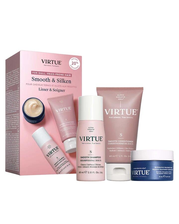 Discover the secret to your smoothest, most brilliant hair with the Virtue Labs Smooth Discovery Kit. This is the perfect introduction to the complete smoothing regimen, providing a curated collection of products designed to tame frizz, block humidity, and repair damage. This three-piece set includes the bestselling Smooth Shampoo and Conditioner, plus the powerful Restorative Treatment Mask, all powered by the revolutionary Alpha Keratin 60ku®. This unique protein seeks out and binds to damaged sites, filling in the cracks in the hair’s cuticle to create a flawless, frizz-free, and incredibly smooth surface.