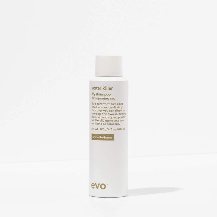 evo Water Killer Brunette is a two-in-one dry shampoo and styling spray designed specifically for darker hair tones. It refreshes hair between washes by absorbing excess oil, adding volume and texture, and blending seamlessly with brunette shades to avoid white residue. This lightweight formula also provides grey coverage and root touch-up benefits, making it ideal for extending the life of a blow-dry or styling on the go.